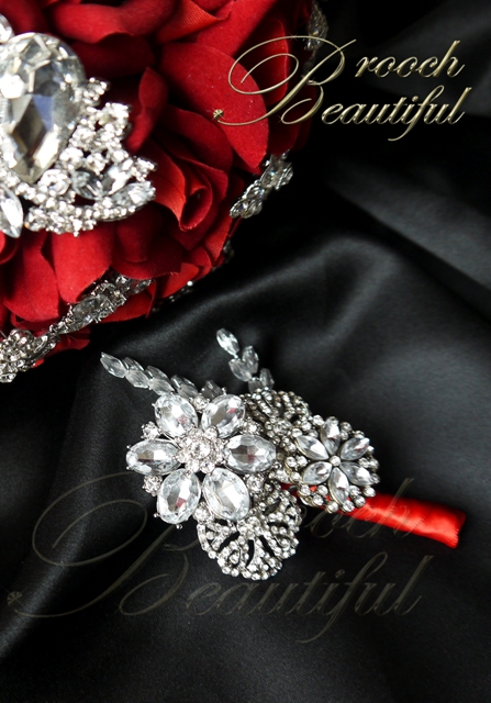 Red Bling Velvet Brooch Bouquet boutonniere 4