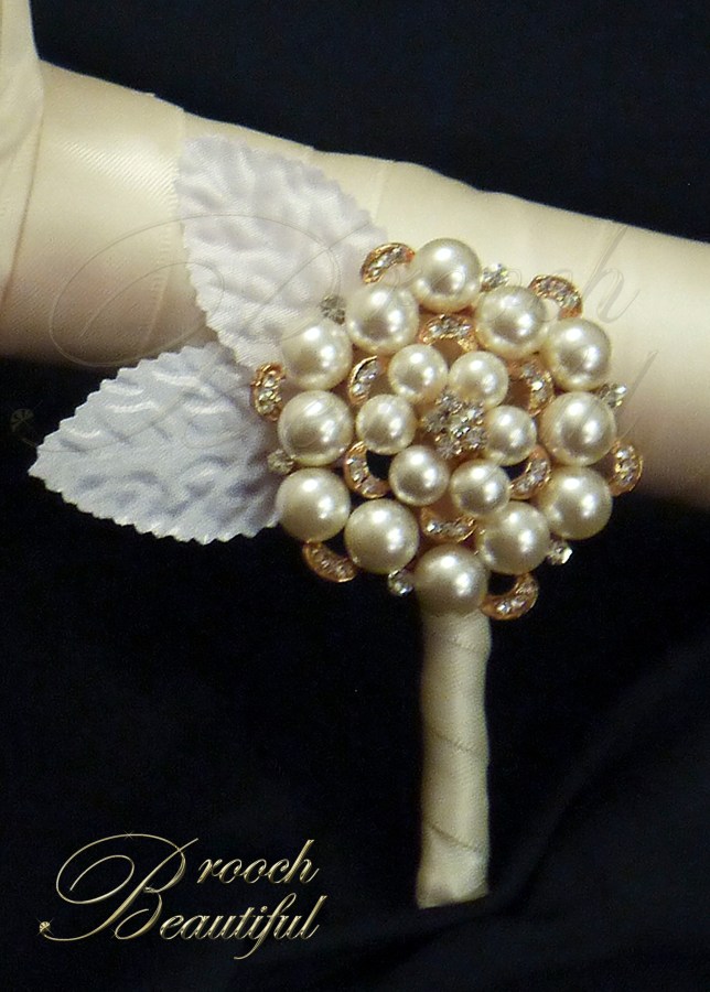 Vintage Gold Pearl Ivory Bling Brooch Boutonniere buttonhole