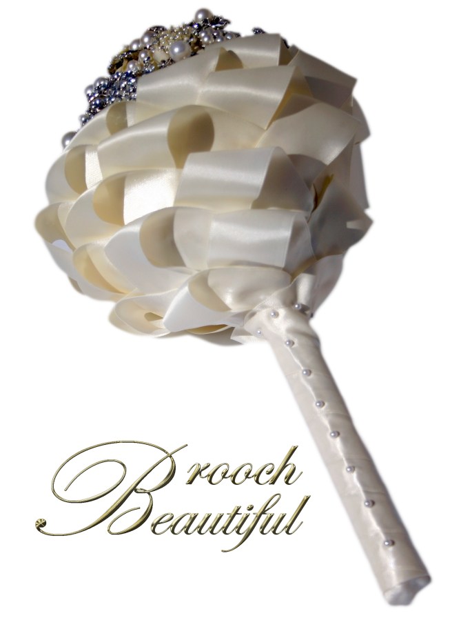 ivory pearl ribbon brooch bouquet handle