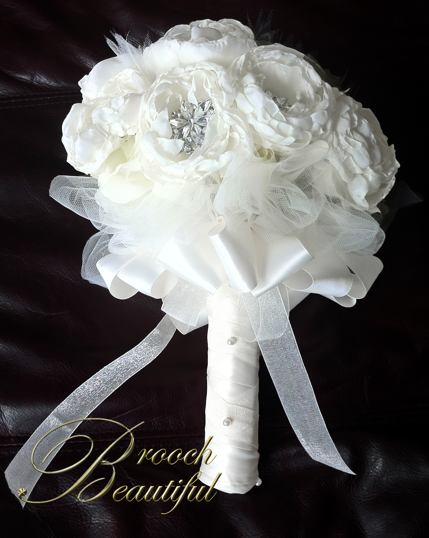 These life like peonies are custom made to hold brooches in the center. Photo courtesy photos by Danelle