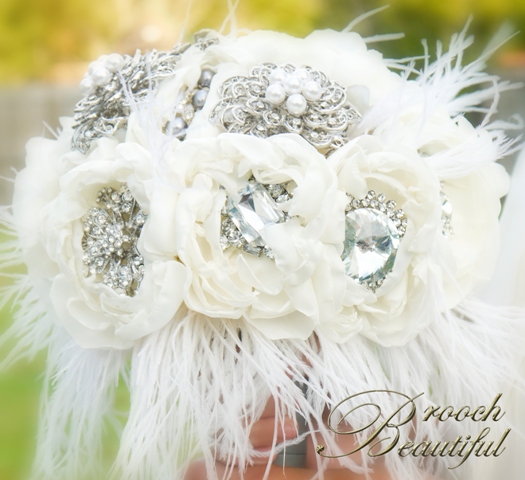 feather fabric peony flower brooch bridal bouquet #featherbouquet #peonybouquet #vintagebouquet #broochbeautiful #bridalbouquet